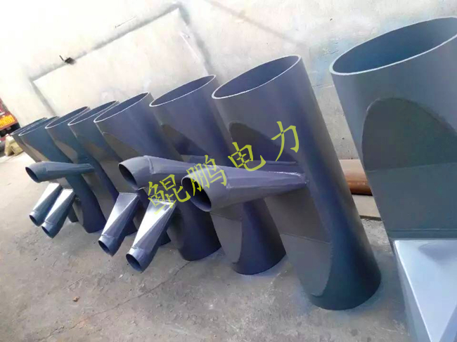 对典道DD27系列煤粉混合器,用户在使用中时有反映:在给粉机运转正常,一次风完全畅通的情况下,四角燃烧器喷嘴出口煤粉浓度高低不均,进入炉膛的煤粉量偏差很大,甚至严重时会产生断煤现象,造成锅炉运行参数不稳定,气压、气温下降,被迫短时间降负荷。固态排渣炉容易发生灭火,液态排渣炉因四角风粉不均匀,影响到炉温不均匀造成炉内四角堆灰,也影响排渣,为了协助化渣而增加助燃油耗,对锅炉燃烧稳定性和经济性极不利。 究其原因主要是:DD27系列煤粉混合器结构设计尚欠合理,该混合器的双托板结构阻力大,造成落粉管内部呈现正压,使煤耗粉从给粉机下落时被下部正压托住,形成托粉现象,影响给煤均匀性。WL—QF系列全负压煤粉混合器把双层托板改成单托板,又在落粉管与混合器联接处的后壁加一块弧形钢板插入煤粉混合器内部一定深度,使流经的一次风对落粉管产生引流作用,彻底消除了托粉现象。同时减轻给粉机下部垂直管段到与一次风管连接处的磨损,大大延长使用寿命。